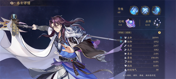 技能描述:赵孤鸣越战越勇,攻击造成击败后回复自身40%生命