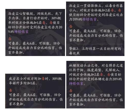 此外,毒可以和了了的火海、左丘肃的雷电等持续伤害叠加,所以一旦练度上去,组一队DOT伤害队伍,也许是未来可期的(参考爬塔时对面的洛凌尘)。