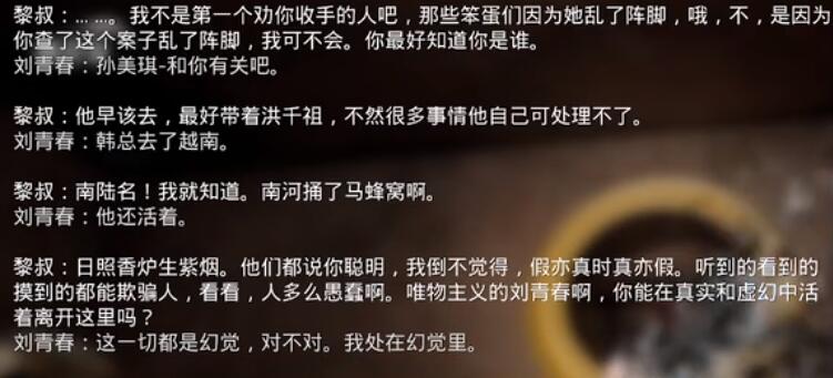 黎叔,他消失了。难道他也是幻觉?这个黎叔太狡猾了, 利用一切可能的手段以及人性的弱点来完成他的地府。