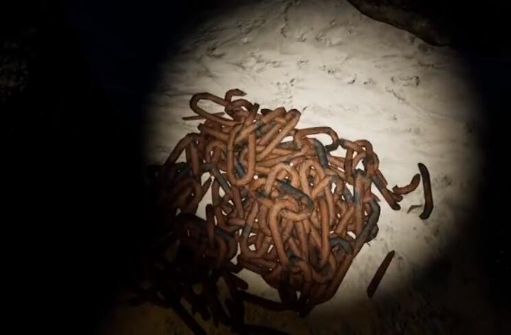 铁锁链:地上扔着铁锁链,上面还有血迹,不是捆绑过动物就是人。