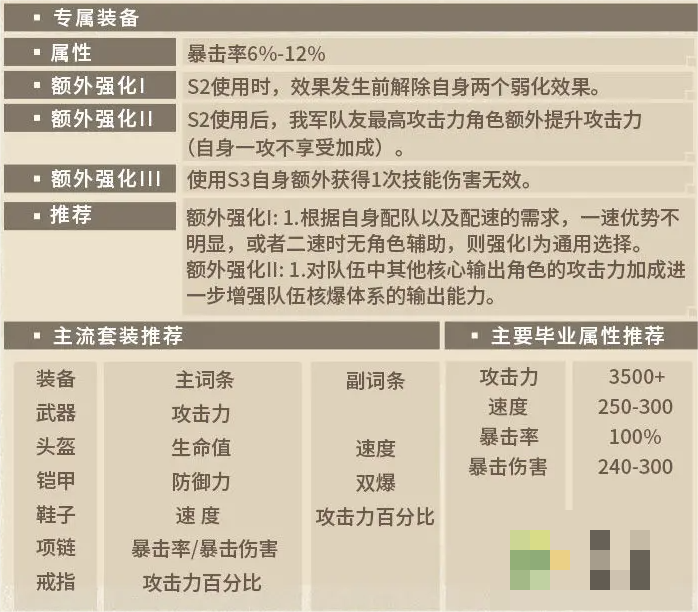 木狼枪的技能伤害倍率公式以及技能逻辑决定了此角色走常规高速核爆的玩法需要速度套为核心套装。