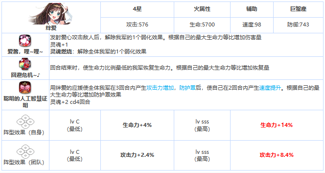 第七史诗是一款十分火爆的手游,其中绊爱是游戏中的四星角色,不少小伙伴想了解该角色,下面小编为大大家带来了四星英雄绊爱的介绍,希望对感兴趣的玩家有所帮助,大家一起来看看吧。