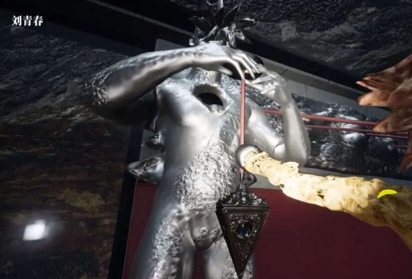关联获得“占卜”后可在查看手杖时点击将其拿在手中,根据从左到右数4-1-2-3的顺序点击密室内墙上的画作打开房顶后,拿举手杖状态下用顶端金属触碰怪人身前灵摆,房顶将显示占卜内容。