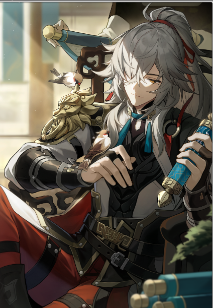 一只雀儿跳下他的肩膀,他顺势抬手接住。