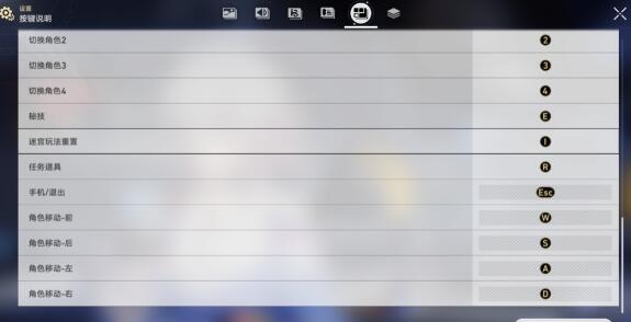 最后就是一些快捷键啦,我在这里就不过多阐述啦,游戏当中点击左上角手机图标,然后点设置,从左往右第五个就是按键设置啦。下图是初始设置,小伙伴们也可以根据自己的习惯进行修改噢。