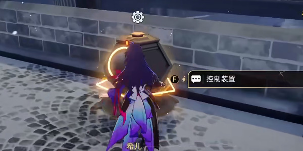 1、首先我们跟随任务指引来到目标区域,找到下图的控制装置打开大门。