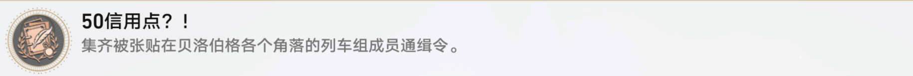 《崩坏星穹铁道》50信用点是游戏中的一个成就,玩家要完成这个成就的话需要收集任务所需的通缉令道具,可能有玩家还不清楚这个成就要怎么完成,下面小编就给大家整理了具体的成就攻略,一起来看看吧!