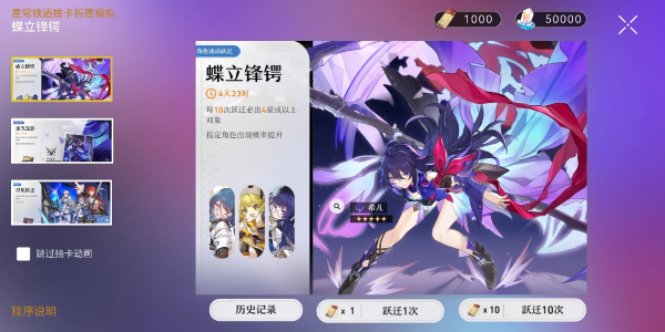 4、选择自己喜欢的卡池,然后点击跃迁即可开始模拟抽卡。