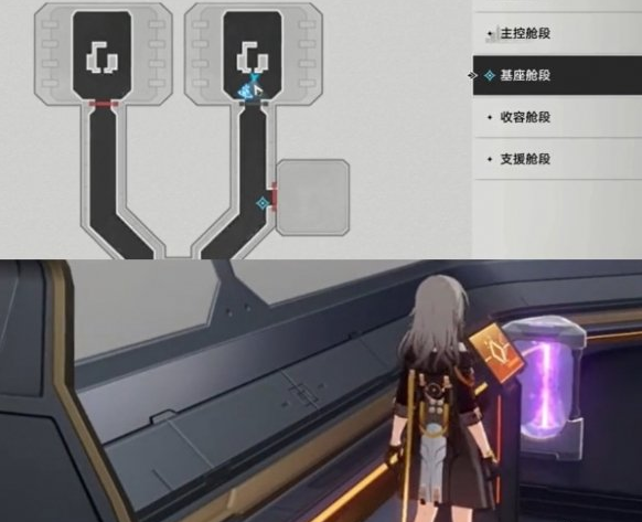 5、在收容舱段最左边地图找到控制室,选择一楼传送点,进入后右转进入房间。