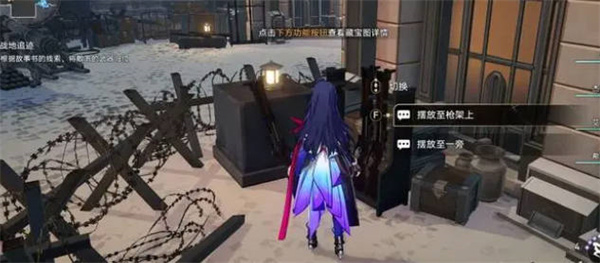 6:然后我们在面前的战壕这里找到四个枪架,然后我们过去把枪都摆上,让所有的枪架上面都有三把枪即可;