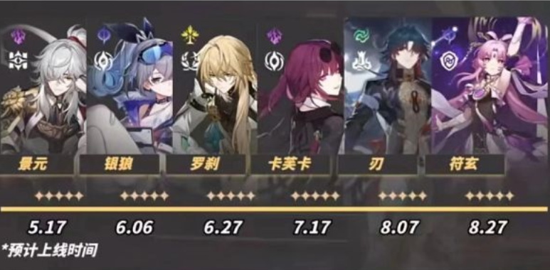 罗刹是五星虚数丰饶角色,在爆料中的上线版本是1.1,计划是1.1下半卡池up,预计时间为6月底(由玩家预测的时间是6月27日)
