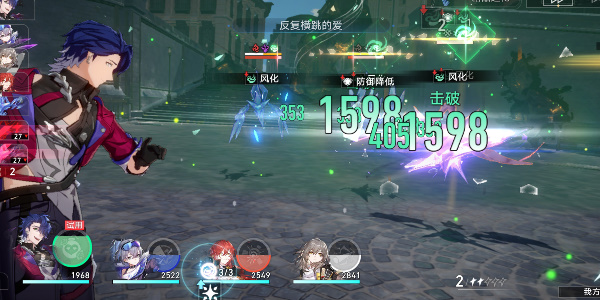 首先桑博我们使用战技打中间的小怪击破后,姬子的弱点姬子会跟上清理,第3-6-9我们再使用大招,姬子在有大怪的时候使用战技平时使用普攻积攒战技,主使用扩散技能;