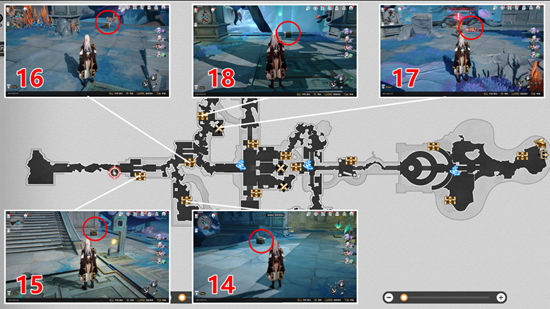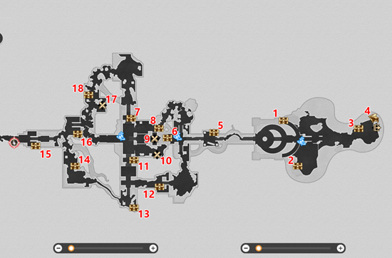 1、地图中共计可以收集18个宝箱以及1个扑满。