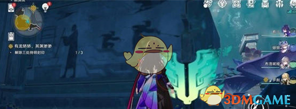 3:第三关,首先清理掉怪物,然后会看到一个地图,我们面向大门这里,然后依次跟几处进行互动;