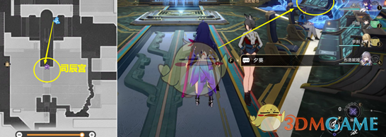 10、前往图示司辰宫位置和晴霓对话,之后按照图示地点完成调查,再去下个任务点。