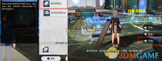 12、接着来到右图任务点调查,这里的选项点“下边”。