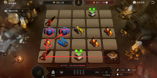 我们可以探索亮起的区域,探索完区域后,会点亮周边区域,探索过程中会消耗耐力。