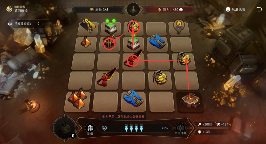 当玩家的耐力消耗完后,每次探索会扣除全队3%/5%的生命值。