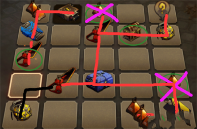 建议炸掉紫色叉的怪,走红色虚线或者绕开(没点开的地方什么都没有)。
