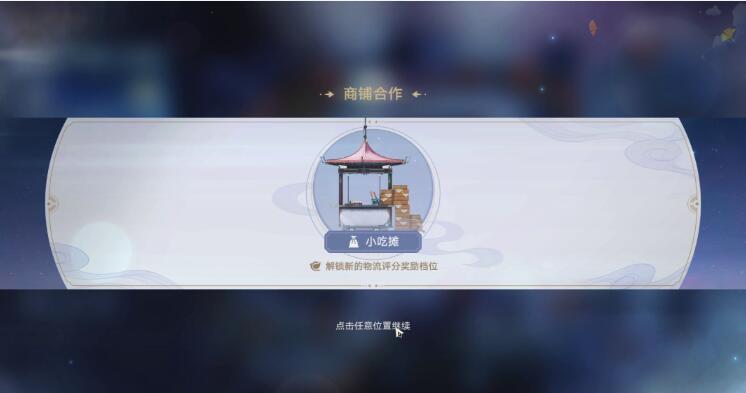 3、完成两次码放货物后就会触发解锁小吃铺的摊位。