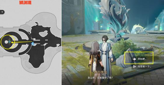2、然后来到鱗渊境再次进行对话并在地次对话后点击开始吧进入任务。