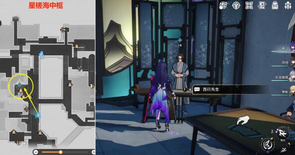 1、首先到达星槎海中枢的左边去找西衍先生进行对话。