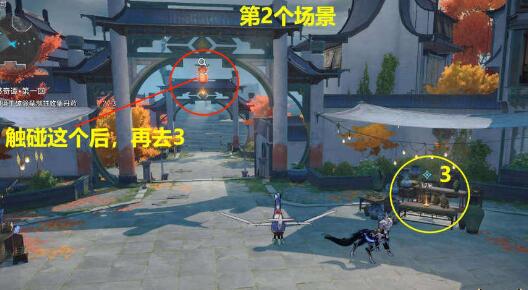 5、接着进入第2个场景后,根据指示去如图3个位置拾取后,接着破除3处禁制即可。