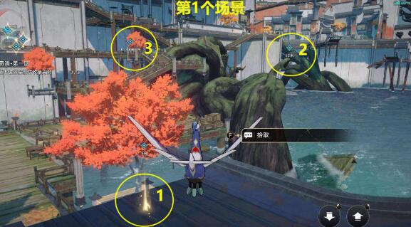 7、接着注意第3处,首先通过触碰红色圈中的灯笼,可以吸引走小怪怪,然后拾取。依次完成即可。