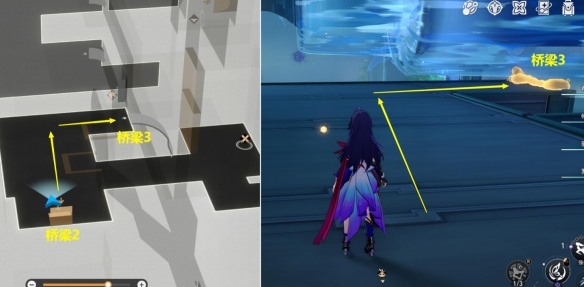 (3)从【桥梁2】上来后,再从右边【桥梁3】下去