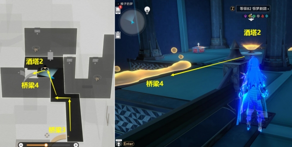 (4)从【桥梁3】下来后,【酒塔2】获得次数后,再从左边【桥梁4】下去