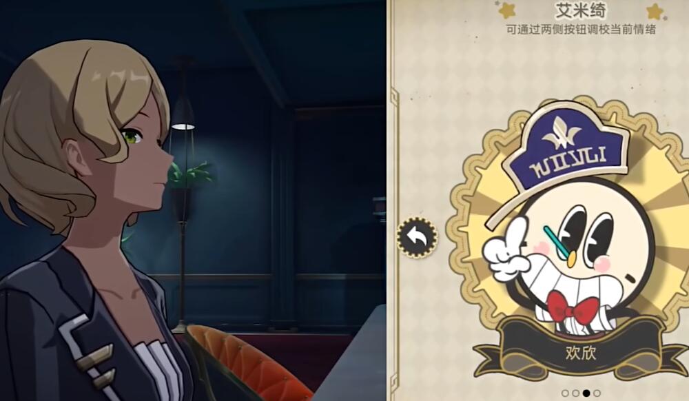 3、使用钟表把戏将其调整至欢欣,完成对话。