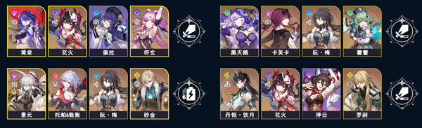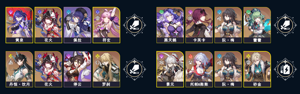 1、黄泉、花火、佩拉、符玄