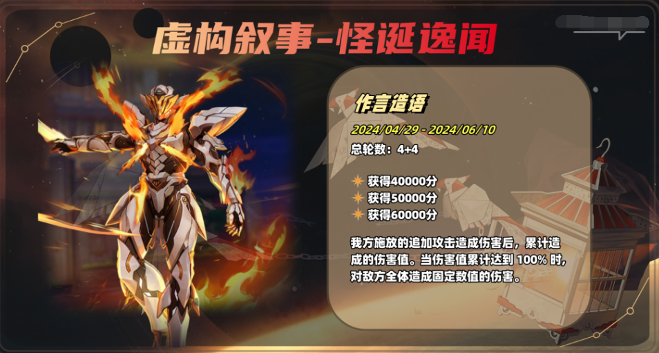 本期虚构叙事从综合层面进行考量,整体难度趋于均衡;主要特点是受怪诞逸闻及荒腔走板的影响:以追加攻击为主要伤害来源,或追加攻击触发频率较高的体系会更容易在本期取得高分;