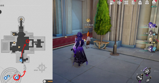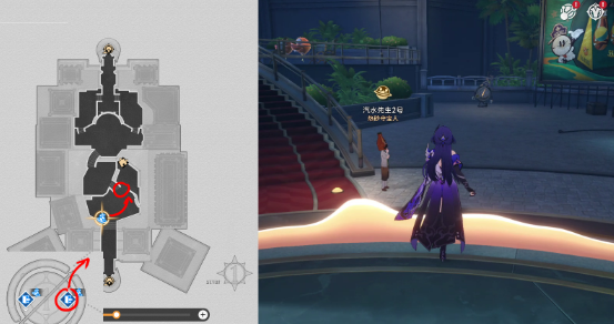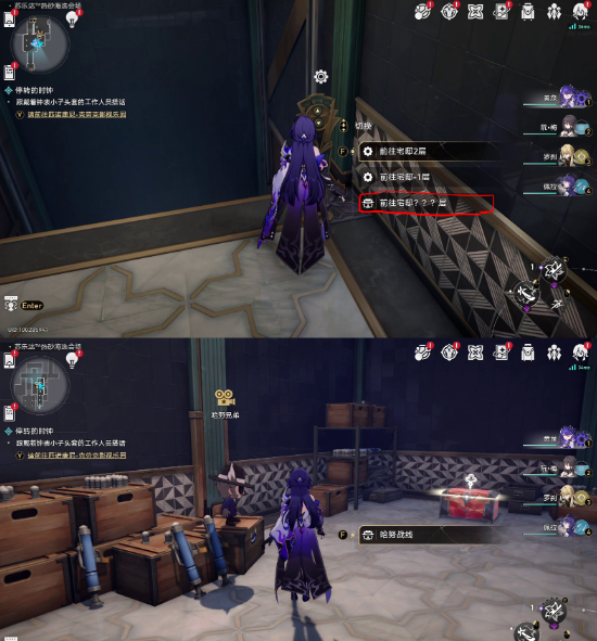 2、完成隐藏挑战:前往图中电梯的位置点击“前往宅邸???层(-2层)”,到达后和哈努兄弟进行对话即可完成隐藏挑战,不需要进行战斗。