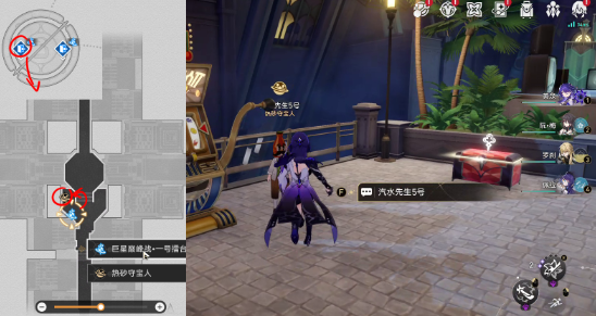 3、玩家需要前往下图位置和“汽水先生”进行对话,就能获得阅读物“未选择的路”,获得提示后“海选特快”装置就会出现在对应订单位置。