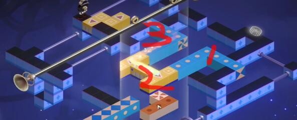 3、然后就需要移动1和2,再把3按照图下的进行移动,把镜子继续向左进行移动。