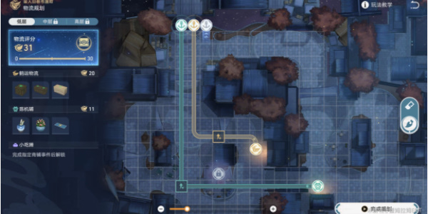 1、低层物流规划路线图,低层的难度并不高,玩家只需要达到规定的要求即可。