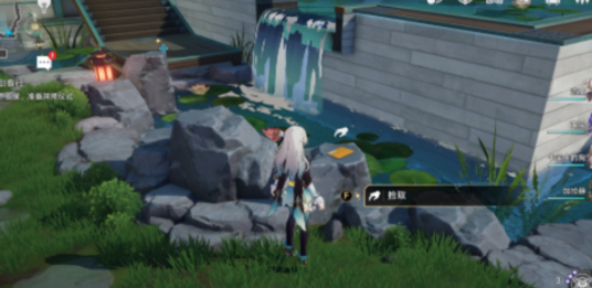 2、在传送点附近的水池中找到一个小假山。