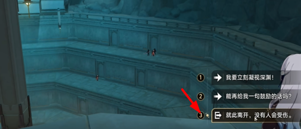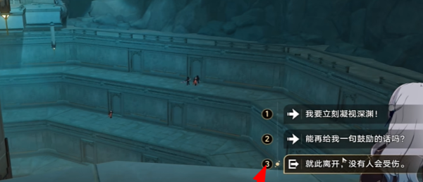 答:前往勘录舍·栈道,在悬崖边做出正确选项即可