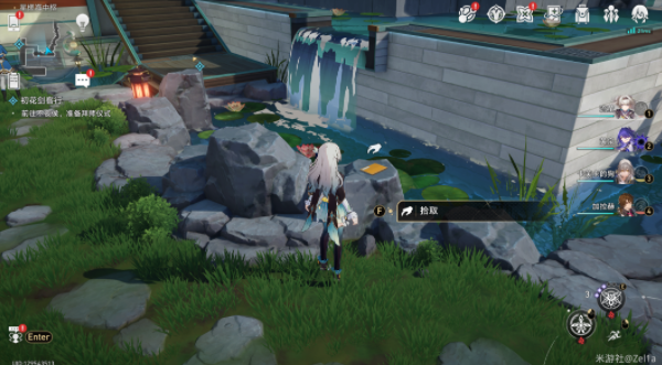 2、到达传送点后,可以在附近水池旁边看到一个小假山