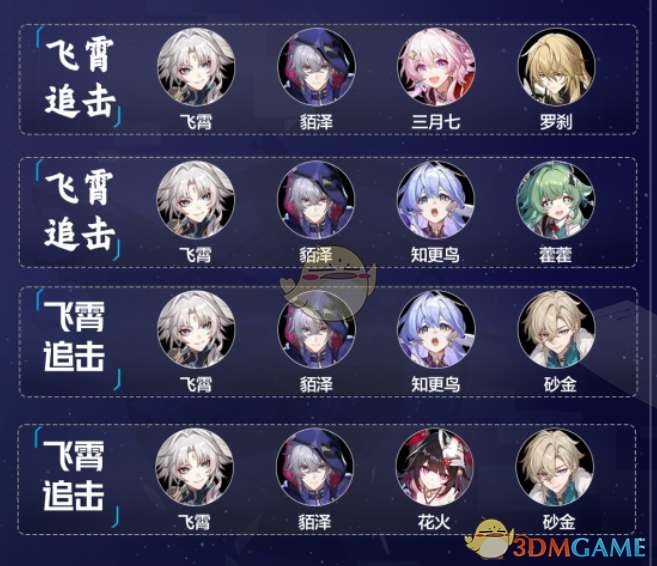 如果玩家有预算抽取飞霄的话,当前版本的最佳配队就是:飞霄+巡猎三月七+貊泽+砂金。