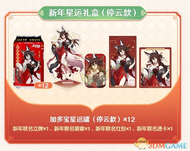加多宝星运罐(停云款)x12新年联名立牌x1、新年联名徽章x1、新年联名红包x1、新年联名透卡x1