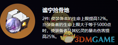 2、当装备者的生命上限大于等于5000点时,使装备者及其忆灵的暴击伤害提高25%。