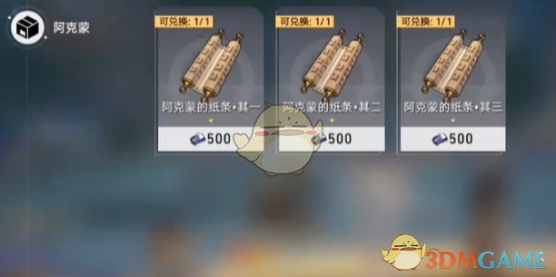 2、接着和阿克蒙对话,打开商店,购买打折的3个纸条;