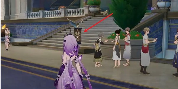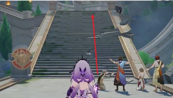 3、一直往前走,上楼梯后,可以在传送门的右边看到一个启目录,对话一下。