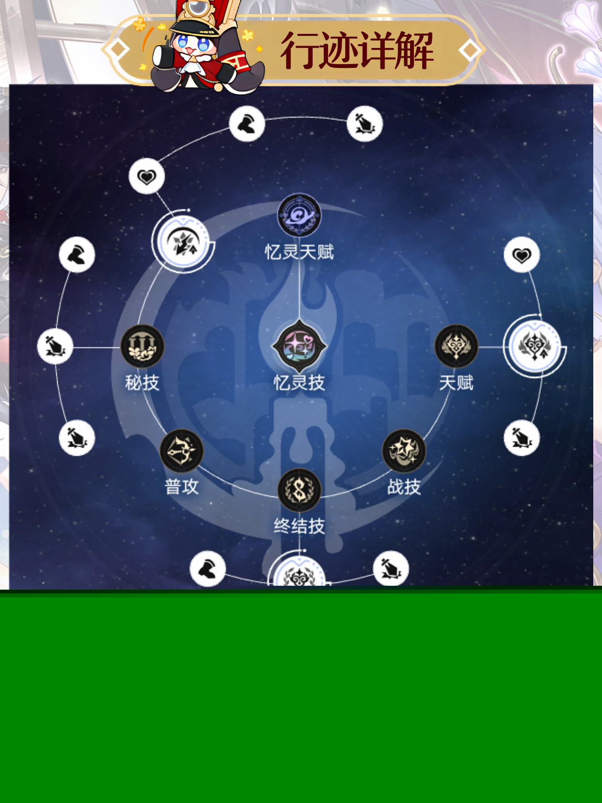 最后可以为黄金裔角色提供不同的专属加强效果,且效果有被动生效/单次生效/整场生效等不同模式,大招开启机制也较为特殊,需达到24点[追忆]值才能开启首次大招,每次施放大招消耗12点[追忆]值。