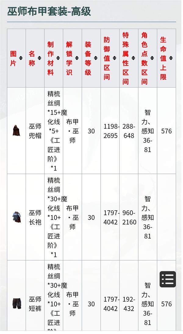 装备分为三大品类,布甲-皮甲-金属甲 每种品类都有各属性的装备