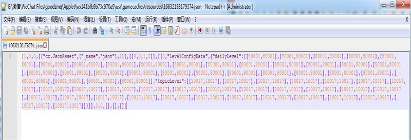 4、根据如图路径找到第三个“.json” 文件(Appletwx141bfb9b73c970a9usrgamecachesresources),将我们提供的脚本代码替换掉就可以了。