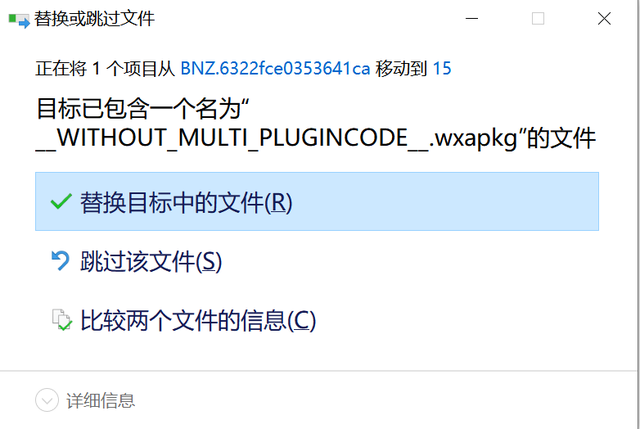 7、复制到上面提到的【15】文件里,点击【替换目标中的文件】即可。