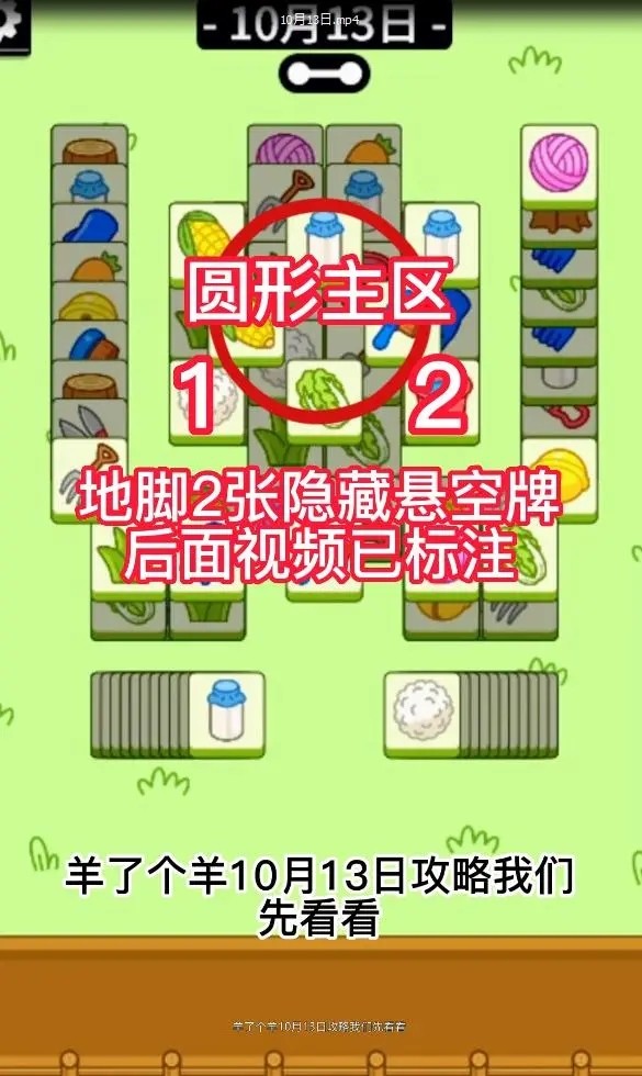 今天羊了个羊通关先消除中间主区圆形的哦,注意隐藏悬浮牌。